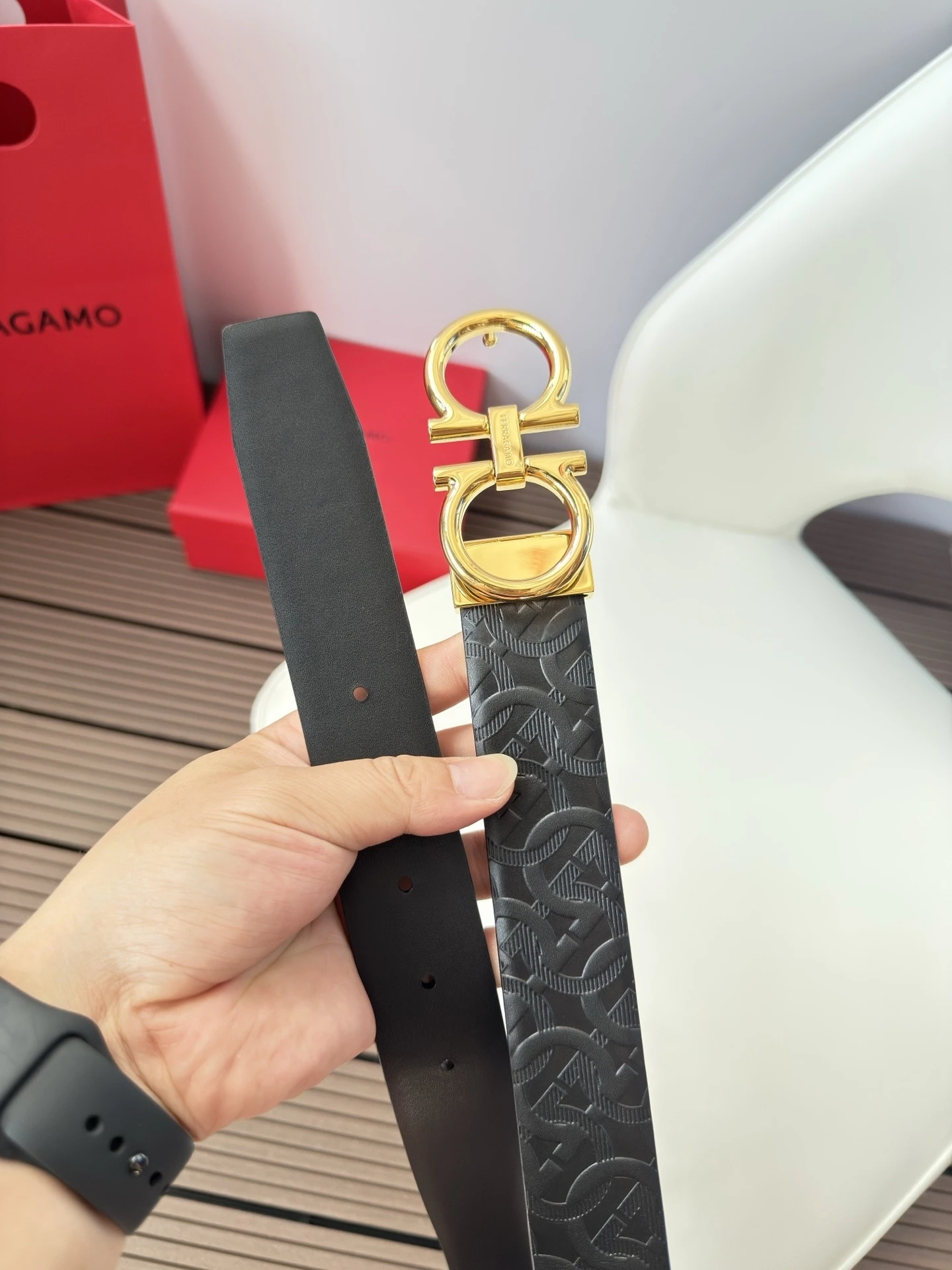 Ferragamo 3.5cm Original Leather. Precise brass hardware upgrade version, genuine factory IP electroplating! Original design matching.