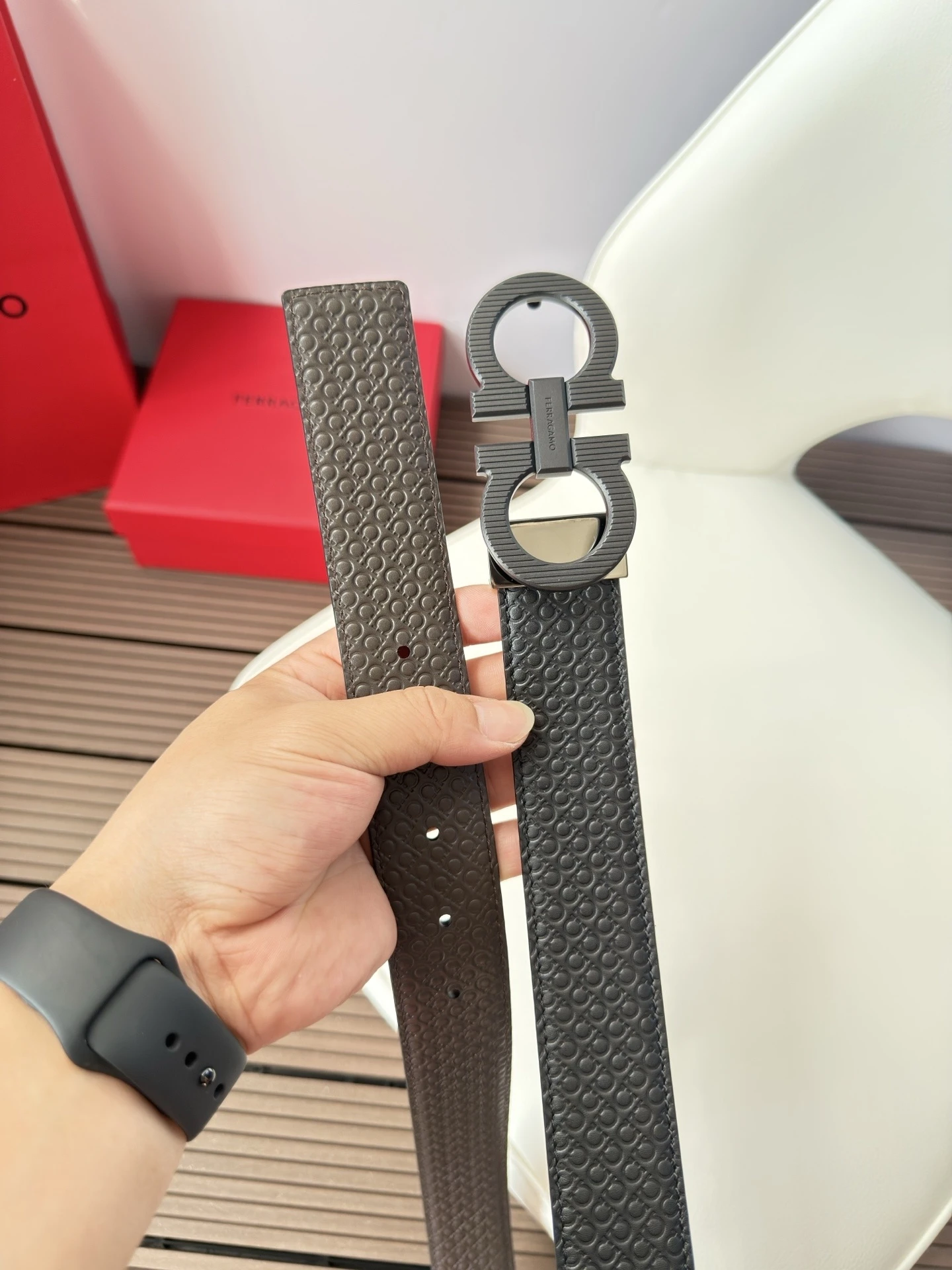 Ferragamo 3.5cm Original Leather. Precise brass hardware upgrade version, genuine factory IP electroplating! Original design matching.