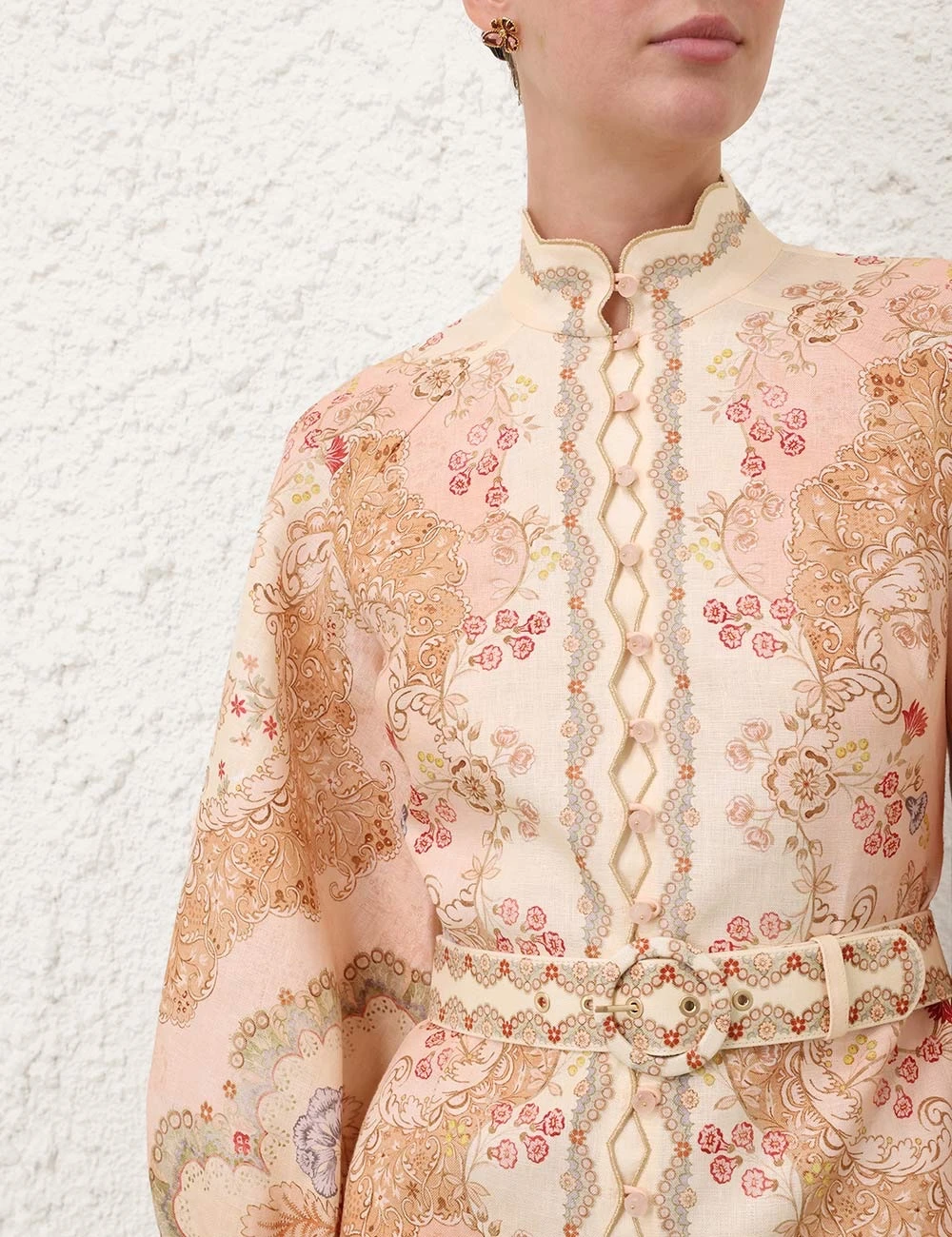 Zimmerman This blouse is a poetic resonance of romanticism and craft aesthetics. Taking pure off-white as the background, it is like a blank artistic canvas, on