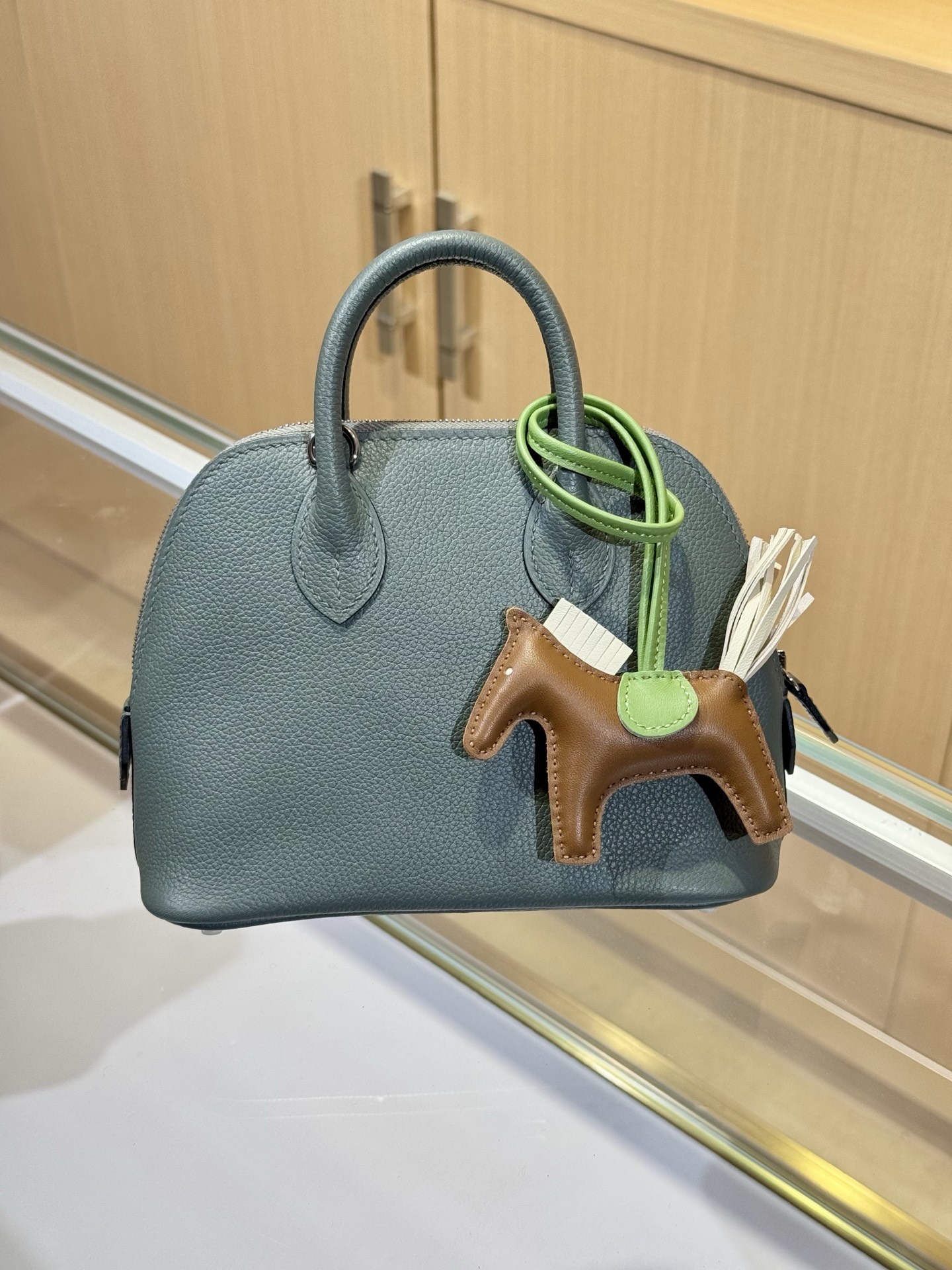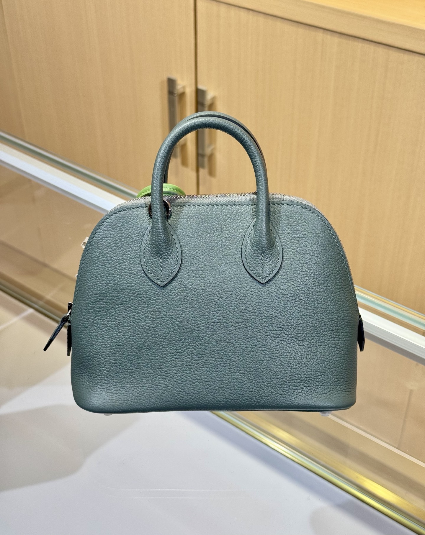 Mini Kelly bag in green leather.