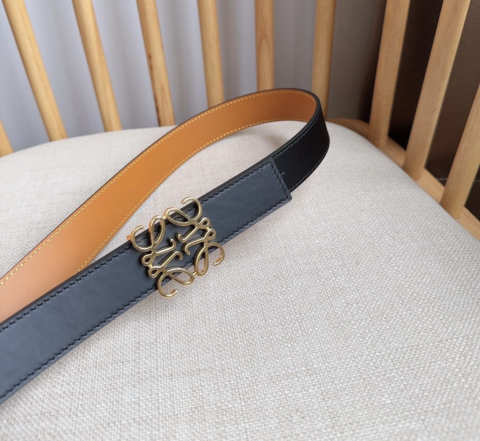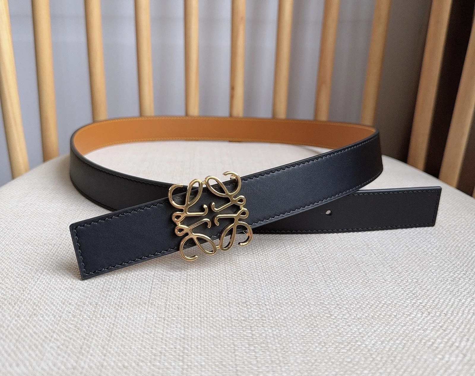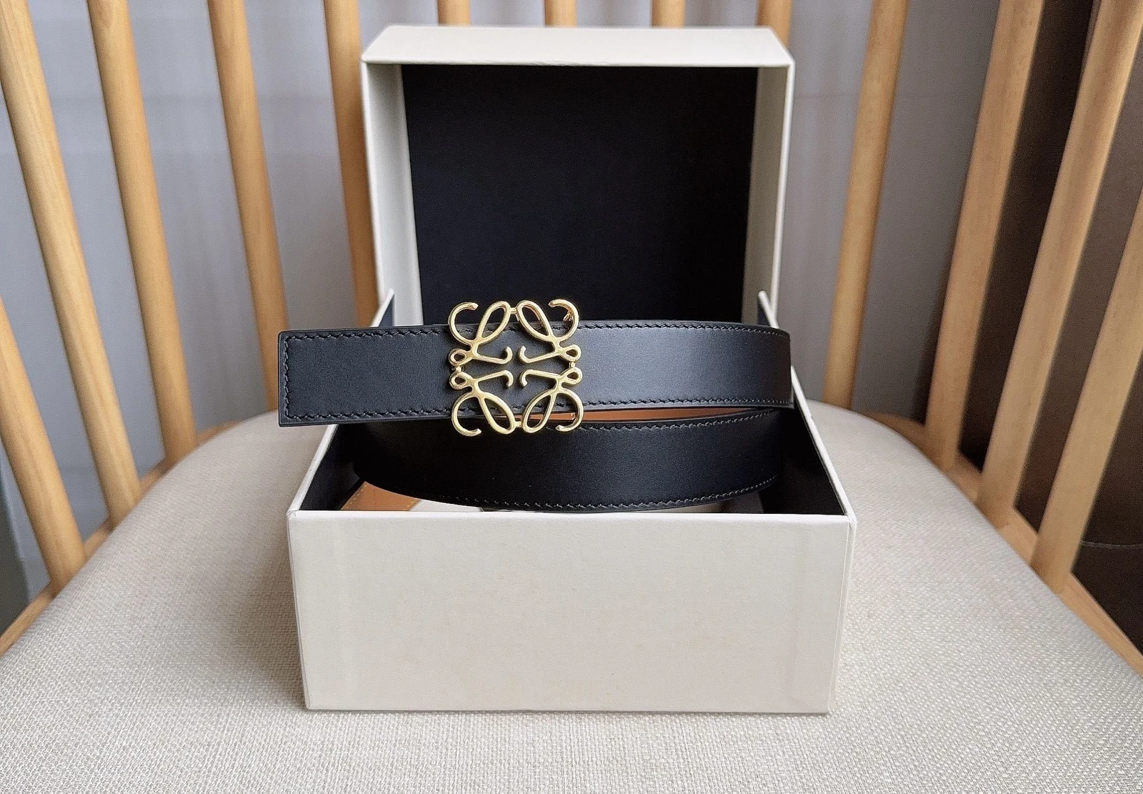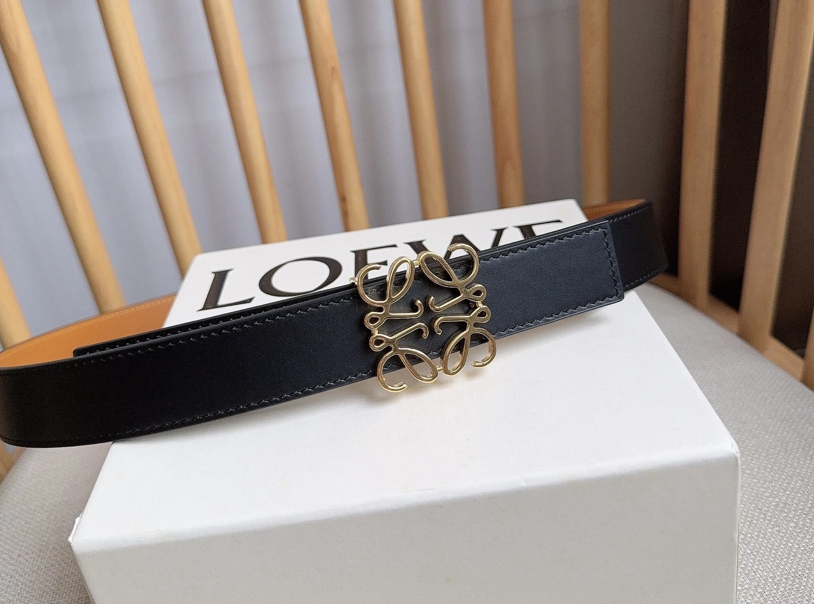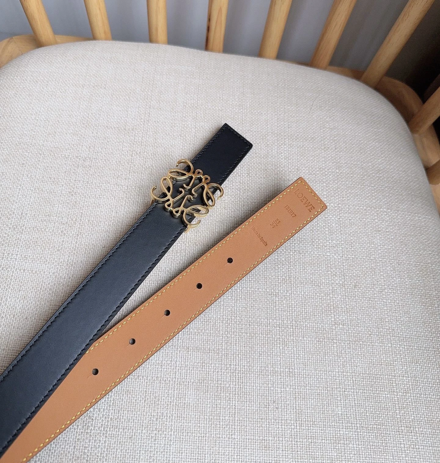 LOEWE latest exclusive belt Width: 2.8cm. Made of smooth cowhide leather on both sides. Equipped with Anagram pin buckle with five-hole adju