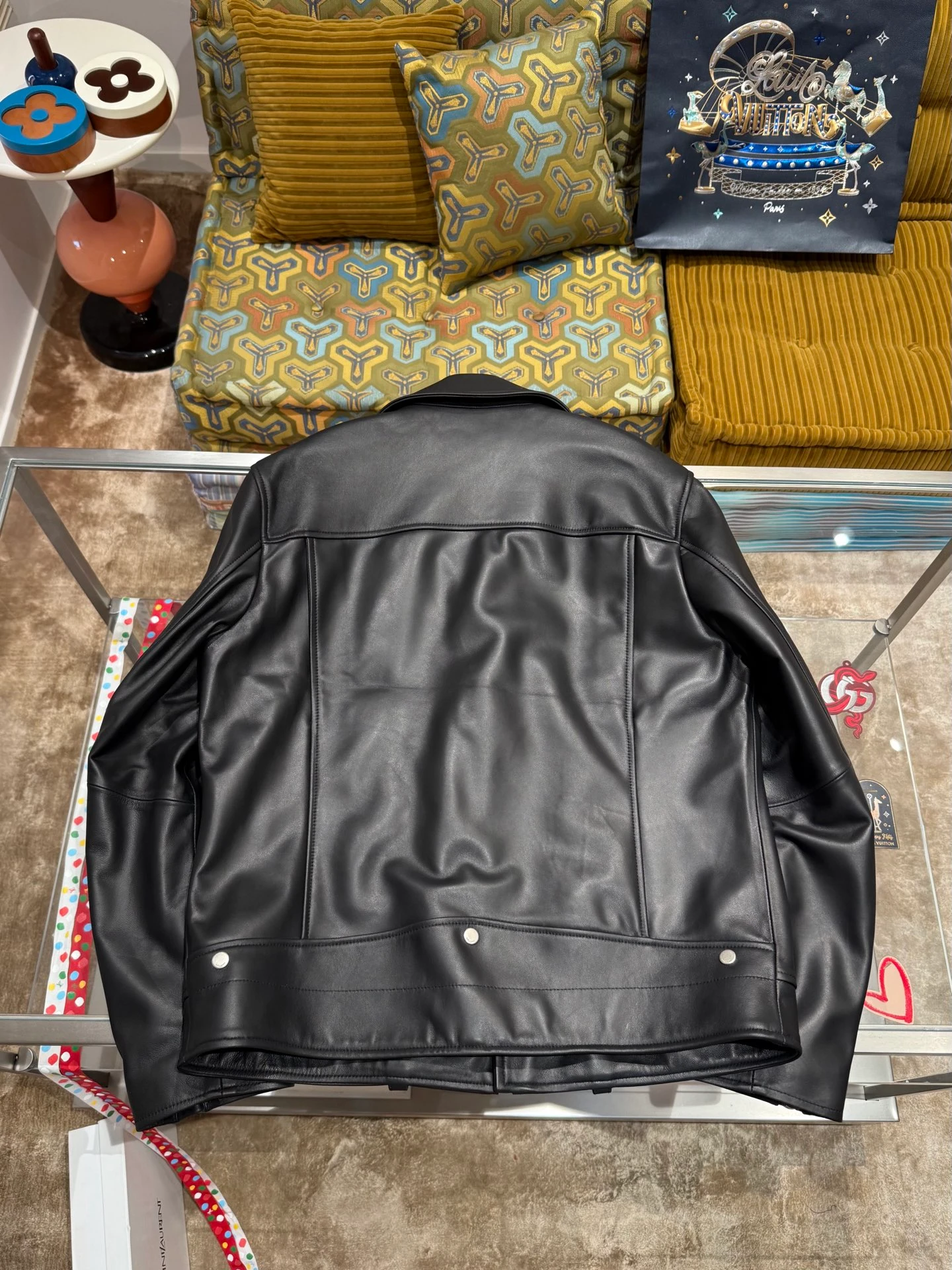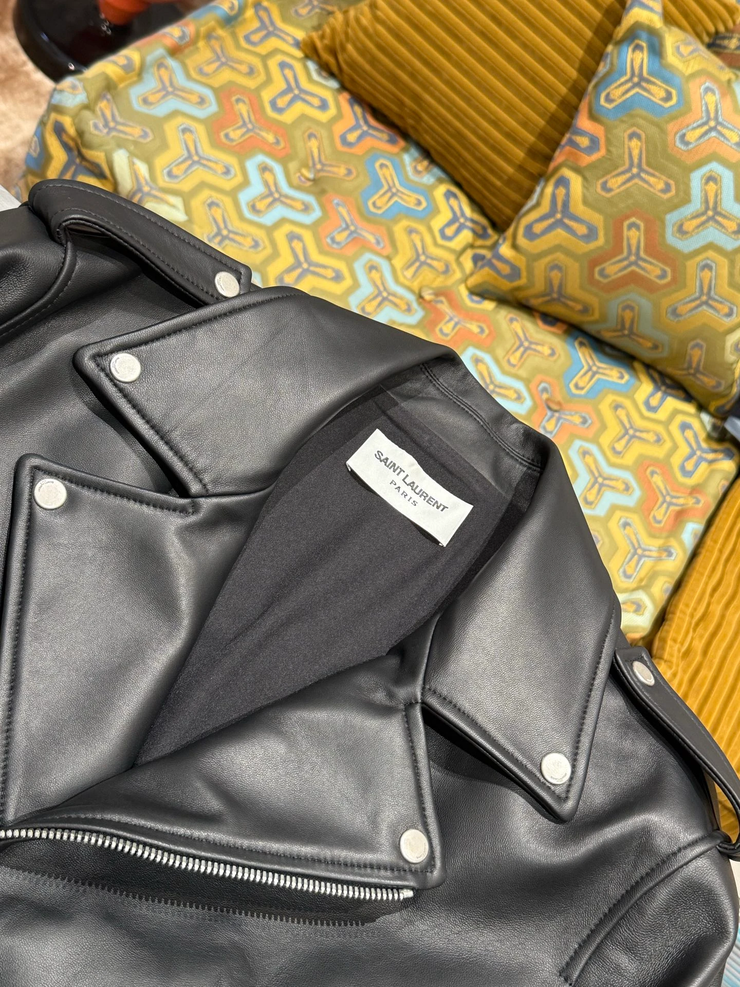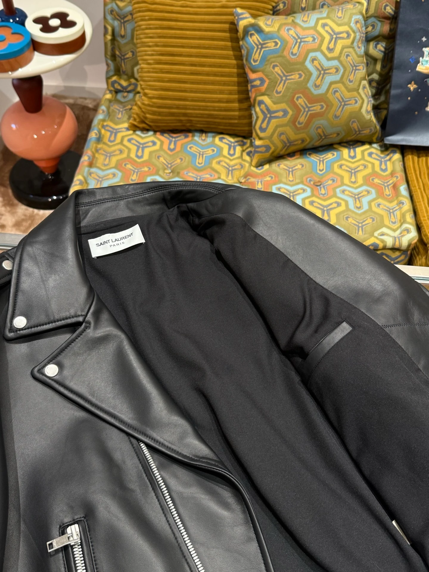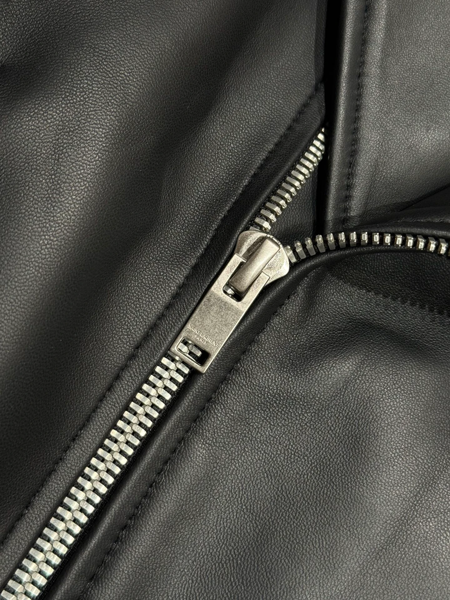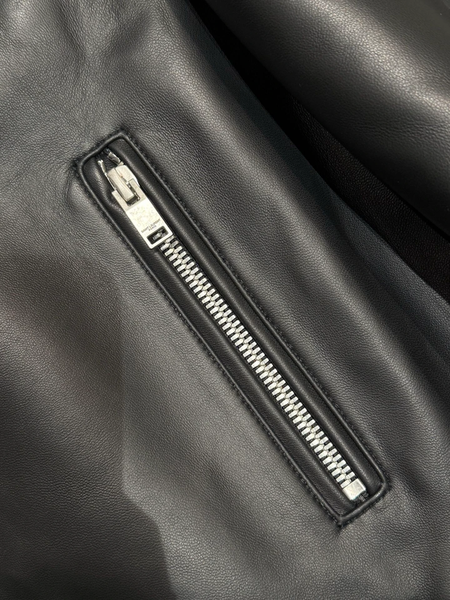 Saint Laurent piece — a garment cut in the house's Italian workrooms. Considered proportions, supple hand-feel, quiet luxury.