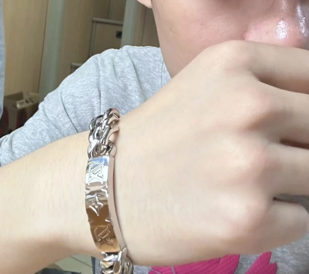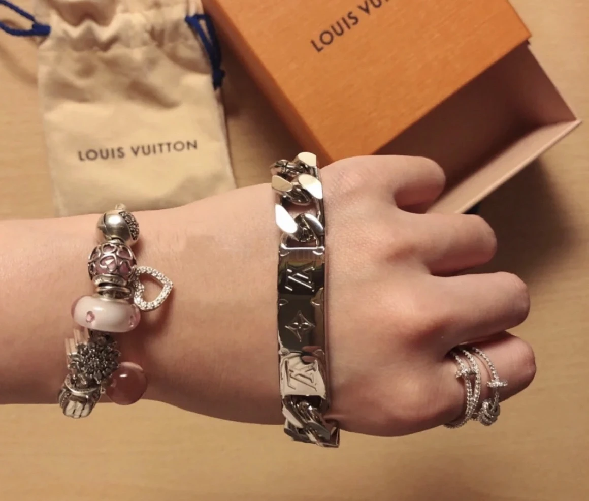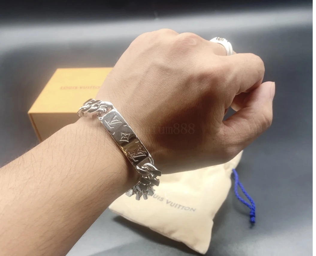 $36 L*V LOGO Cuban silver metal nameplate bracelet for men and women, couples style 💗Item ID: 11176 Expressing the bra