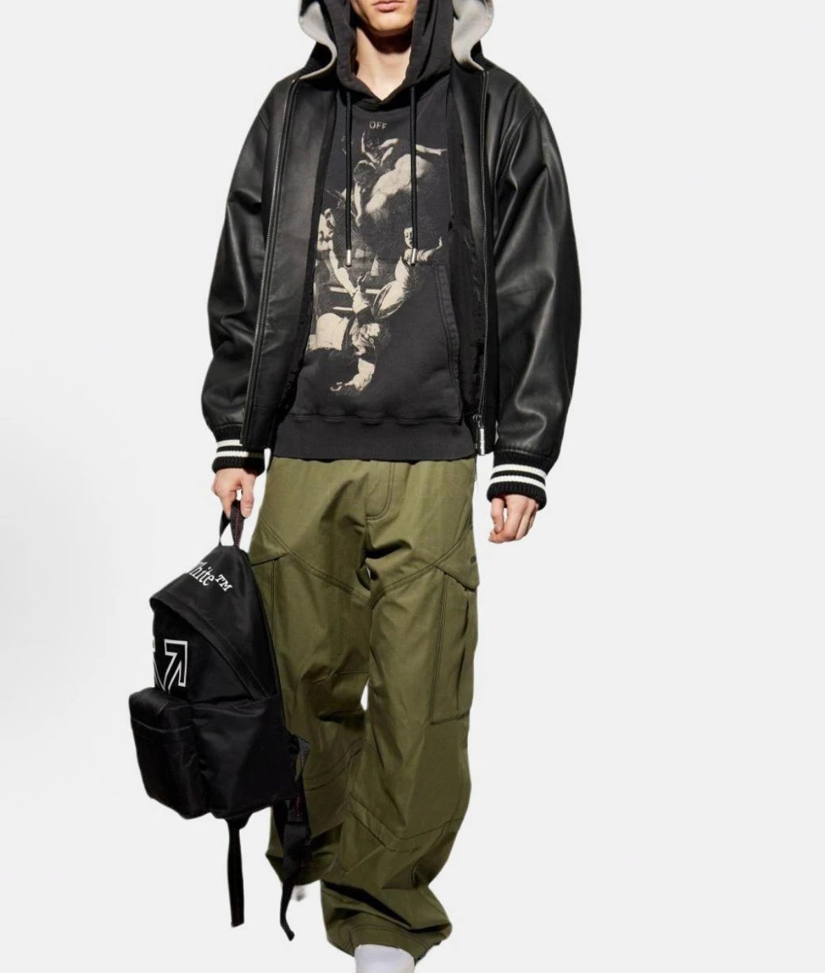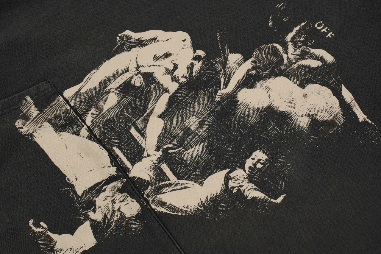 OW Saint Matthew Martyrdom Print Cap All fabrics and threads are custom-woven and custom-dyed. The colors of all fabrics are compared with color cards. The custom-dyed fabric is a 400g loop all-cotton fabric with a silky texture. The finished garment is pre-shrunk after washing to prevent color fadi