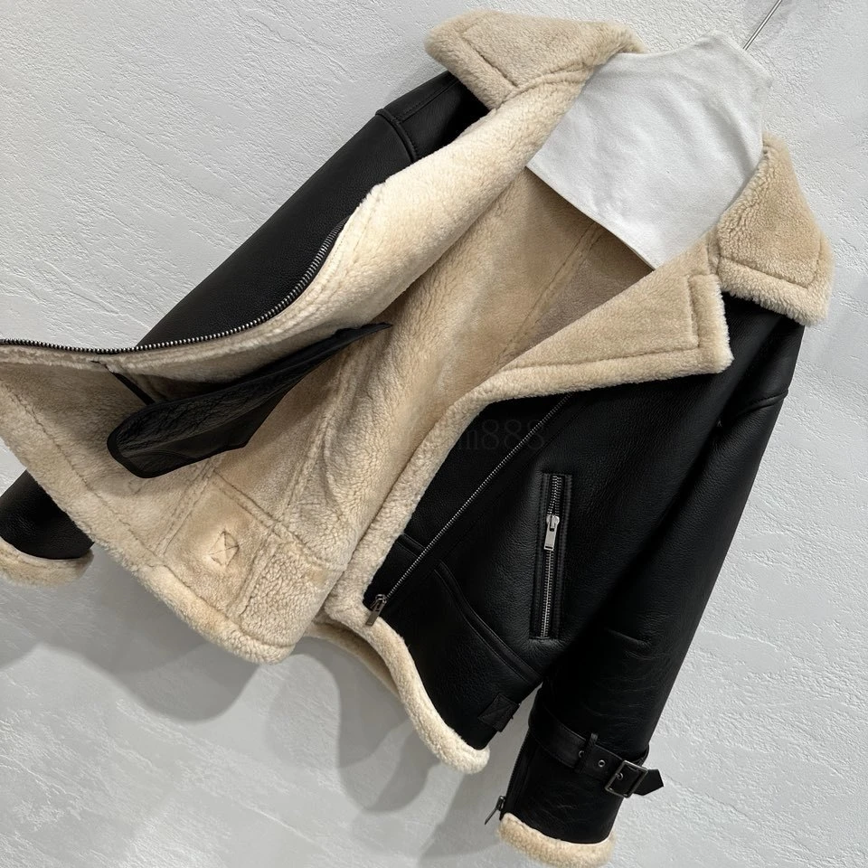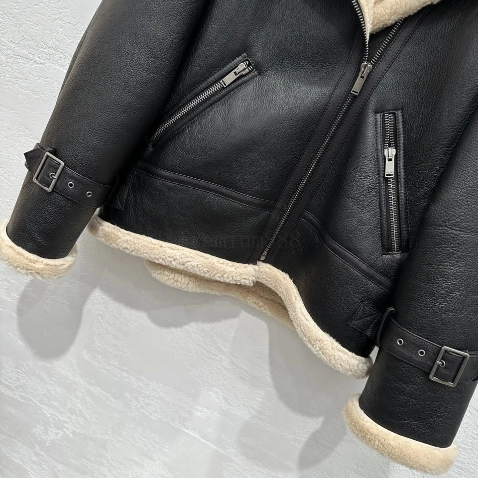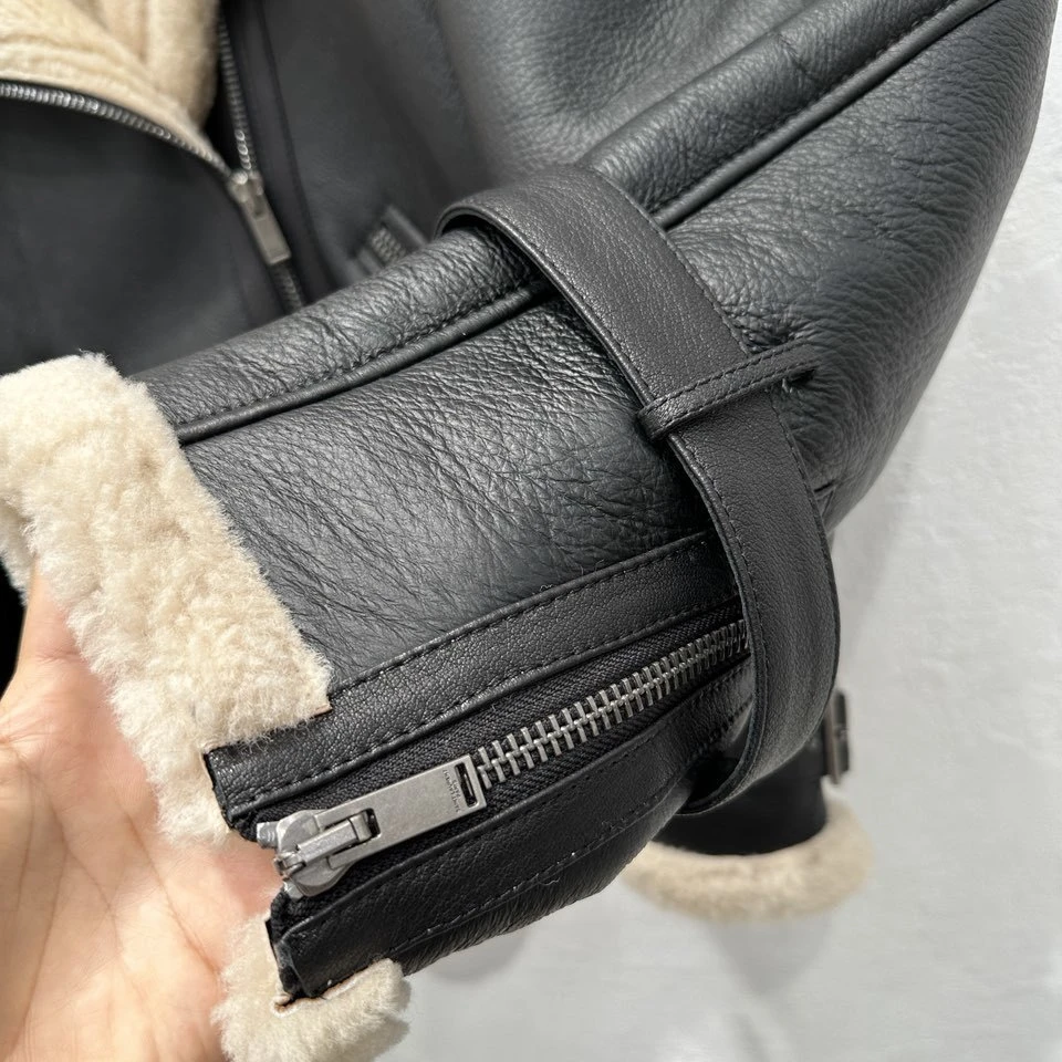 Exclusive debut 💄 high-end original order quality 🤞 Sain*Laurent classic imported Turkish 🇹🇷 locomotive fur in one! Unisex and Couple Counter 💑 Custom Motorcycle Jacket Short Front and Long Back Ve